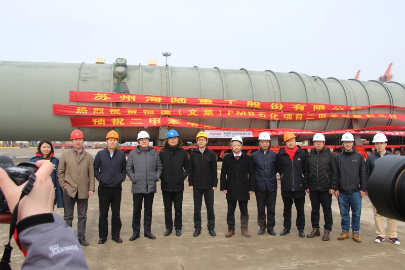 恒逸石化PMB石油化工項目最大單體設備抽余液塔,直徑10.7米,長度81米,自重907噸,花落文萊達魯薩拉國PMB島!